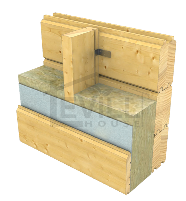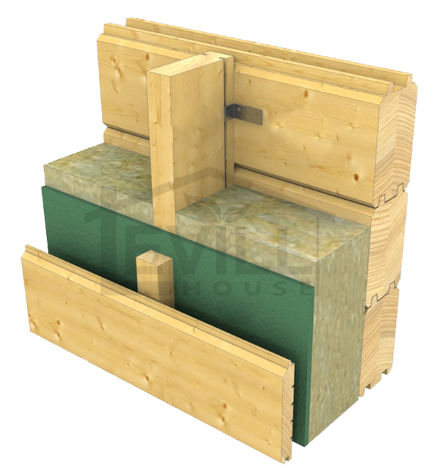 La struttura in blockhaus può essere coibentata internamente per il raggiungimento di elevate prestazioni energetiche (prestazioni superiori a quelle della struttura grezza). La TECNOWOOD HOUSE ha studiato e propone una doppia soluzione: