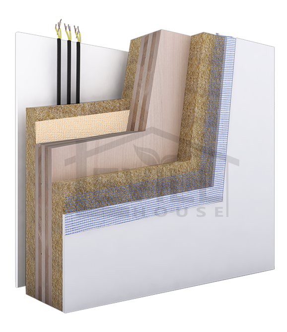 Sull’esterno dei pannelli parete viene applicato in opera il rivestimento di facciata, mentre il lato interno fornisce il supporto per la posa delle canalizzazioni impiantistiche mediante la realizzazione di un apposito vano tecnico.